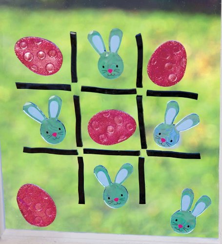 Use this interactive version of our popular GelGems to decorate a window and you'll always be ready for a fun-filled Easter version of an all-time favorite game. Just trade your X's and O's for our squishy gel eggs and bunnies! Like all of our GelGems, they stick to any smooth surface and are reusable year after year. If needed, wash with soap and water. Size: 10"H assembled. For ages 4 and up.